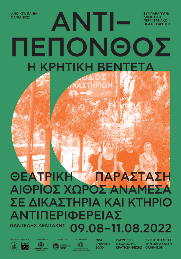 Το Δημοτικό Περιφερειακό Θέατρο Κρήτης συνεργάζεται με το Δήμο Χανίων και την ΚΕΠΠΕΔΗΧ-ΚΑΜ στο πλαίσιο του προγράμματος «Ανοιχτά Πανιά 2022» για πρώτη φορά, υιοθετώντας τη θεατρική παράσταση «Αντιπεπονθός – Η κρητική βεντέτα». Η παράσταση κάνει πρεμιέρα στα Χανιά και στη συνέχεια περιοδεύει σε όλη την Κρήτη με ελεύθερη είσοδο για το κοινό.