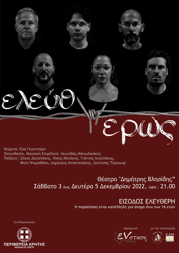Το θεατρικό έργο της Εύας Γκουντάρα «Ελεύθερ(ω)ς» με τη συνδιοργάνωση της Περιφερειακής Ενότητας Χανίων