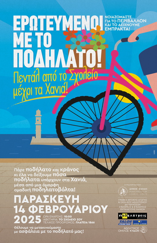 ΥΓ: Η ημερομηνία της δράσης επιλέχθηκε έτσι ώστε η γιορτή του Αγίου Βαλεντίνου να αποκτήσει και μια άλλη διάσταση που θα εκφράζει τον έρωτα για ένα οικολογικό, οικονομικό, παιχνιδιάρικο και αισθητικά όμορφο μεταφορικό μέσο (κι όχι μόνο) δηλαδή το ποδήλατο.