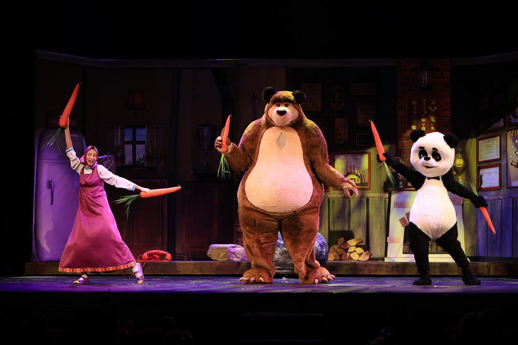 «Η Μάσα και ο Αρκούδος, μια μεγάλη γιορτή» η επίσημη θεατρική παράσταση, ζωντανεύει τον μαγικό κόσμο της παγκόσμιας επιτυχημένης σειράς κινουμένων σχεδίων. Με τα αυθεντικά κοστούμια του εξωτερικού.