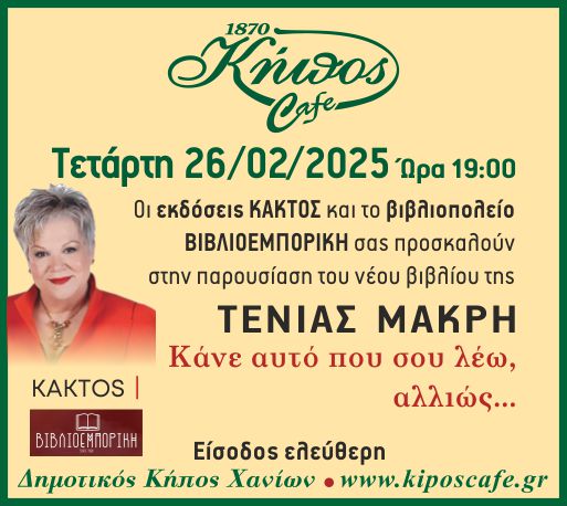 Οι εκδόσεις ΚΑΚΤΟΣ και το βιβλιοπωλείο ΒΙΒΛΙΟΕΜΠΟΡΙΚΗ σας προσκαλούν στην παρουσίαση του νέου βιβλίου της Τένιας Μακρή <<Κάνε αυτό που σου λέω αλλιώς…>>