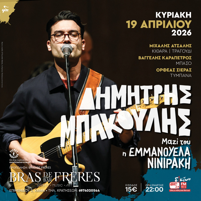 Ο Δημήτρης Μπάκουλης, δημιουργός και ερμηνευτής της μεγάλης επιτυχίας τα ΚΒΑΝΤΑ, συνεχίζει με τις viral ερμηνείες του και δίνει ένα μοναδικό ραντεβού για πρώτη φορά στα Χανιά.