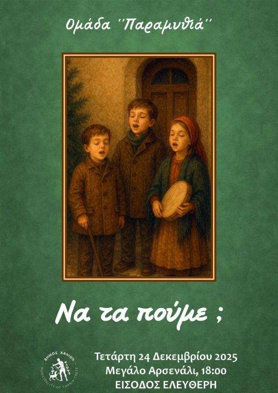Ο Δήμος Χανίων και η Ομάδα “Παραμυθιά” την Τετάρτη 24 Δεκεμβρίου στις 18.00 στον συνεδριακό χώρο, στο Μεγάλο Αρσενάλι σας καλεί στην αφηγηματική παράσταση/μουσικοπαιδαγωγικό πρόγραμμα: “Να τα πούμε; ”
