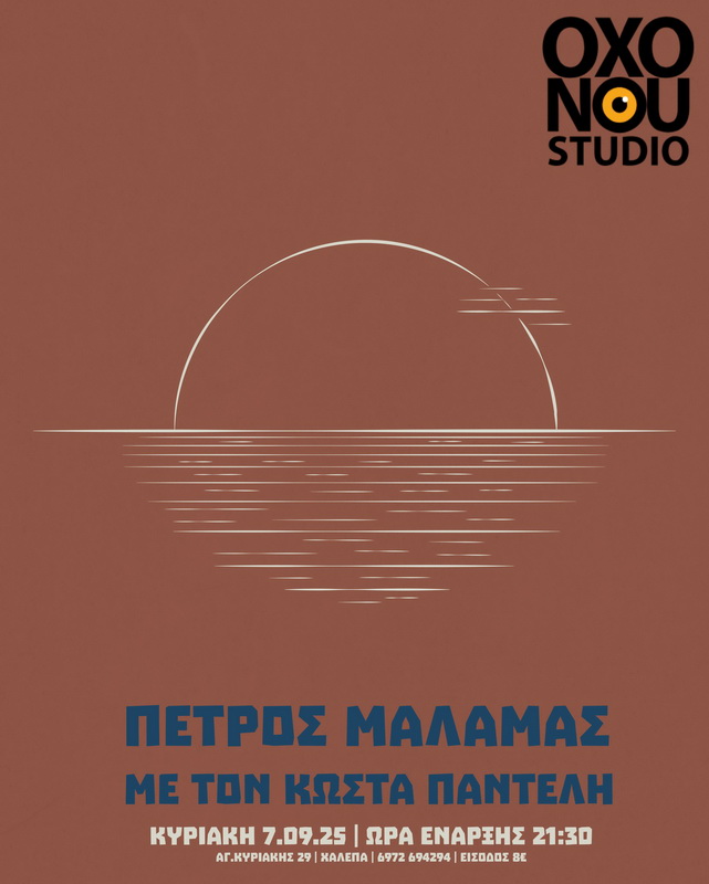 Ο Πέτρος Μάλαμας έρχεται στα Χανιά για να μας τραγουδήσει στο Όξω Νου Στούντιο την Κυριακή 7 Σεπτέμβρη με την κιθάρα του. Αγαπημένα άσματα από την προσωπική του τραγουδοποιία και θαυμαστές επιρροές, έντεχνα ρεμπέτικα και παραδοσιακά ροκ. Μαζί του ο Κώστας Παντέλης στην ηλεκτρική κιθάρα.