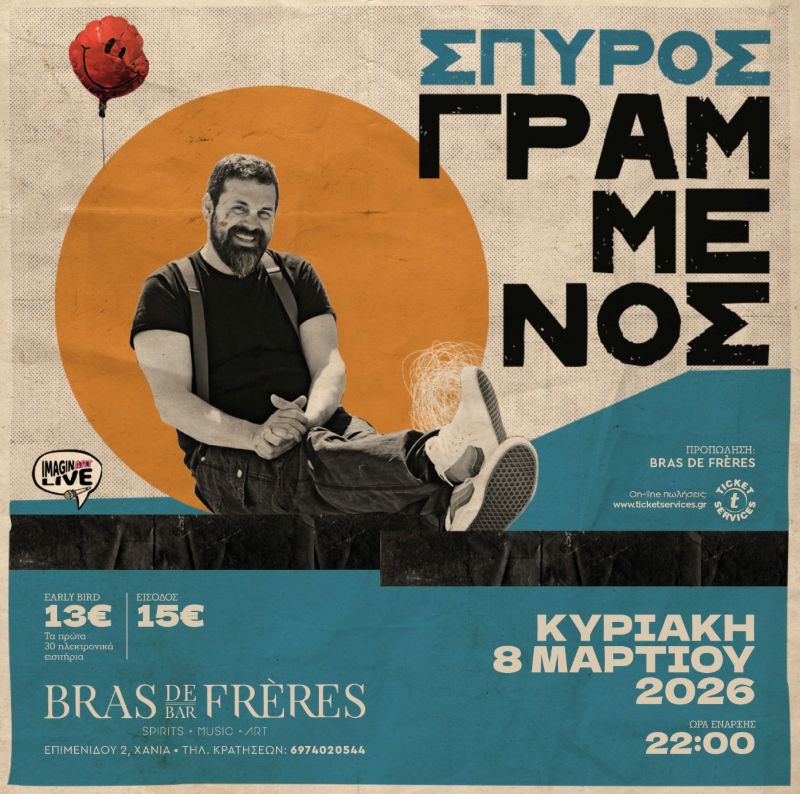 Ο Σπύρος Γραμμένος, μας προσκαλεί την Κυριακή 08/03/2026 στο Brasdefrères στα Χανιά!