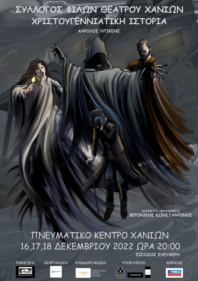 Ο Σύλλογος Φίλων Θεάτρου Χανίων, με τη συνδιοργάνωση της Περιφέρειας Κρήτης – Περιφερειακής Ενότητας Χανίων και του Πνευματικού Κέντρου Χανίων, παρουσιάζει το έργο του Καρόλου Ντίκενς «Χριστουγεννιάτικη Ιστορία».