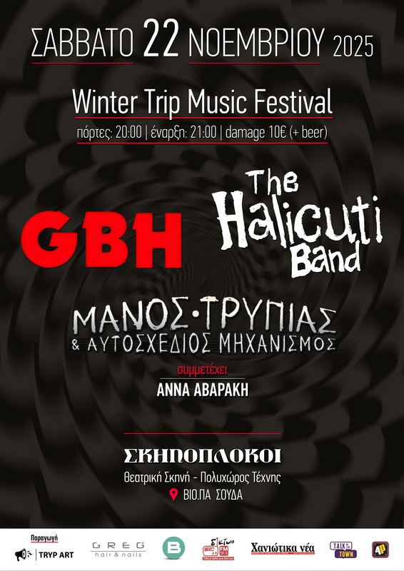 Τρεις μπάντες που αγαπούν αληθινά τη μουσική ενώνουν – ξανά – τις δυνάμεις τους, σε μια σκηνή γεμάτη παλμό, ένταση & φαντασία! Μετά την καλοκαιρινή τους “συνάντηση” στο On The Plain Fest, επιστρέφουν πιο ώριμοι, με μεράκι & πίστη στην διαδρομή που επέλεξαν να ακολουθούν και μας προσκαλούν σ’ ένα – από κοινού – rock ‘n roll ταξίδι, με ήχους ιδιαίτερους & ξεχωριστούς _ #WinterTripMusicFestival