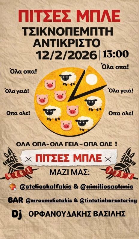 Τσικνοπέμπτη 2026 στις «Πίτσες Μπλε»: Αντικριστό, Παρέα και Γλέντι μέχρι αργά!